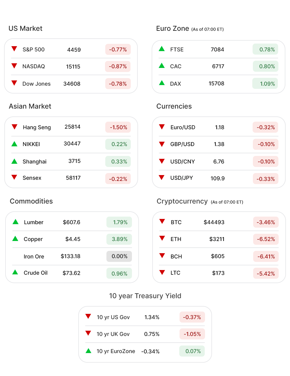The Asian Markets were mixed after Friday’s rout in the US markets and a record high US inflation ramping up concerns that Fed will have to tighten monetary policy sooner than later. Hang Seng, fell by more than 430 points or 1.65% while Shanghai and Nikkei rose 0.33% and 0.22% respectively.