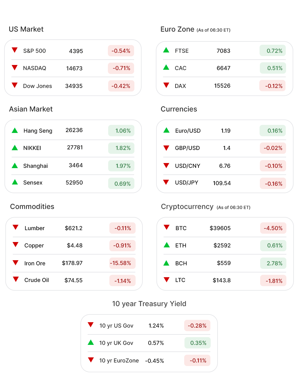 As of 06:00 ET: Nasdaq Futures (0.58%▲) had gained 87 points, S&P 500 Futures (0.62%▲) more than 27 points, Russell 2000 Futures (1.09%▲) 24 plus points, and Dow Futures (0.54%▲) 180 points.