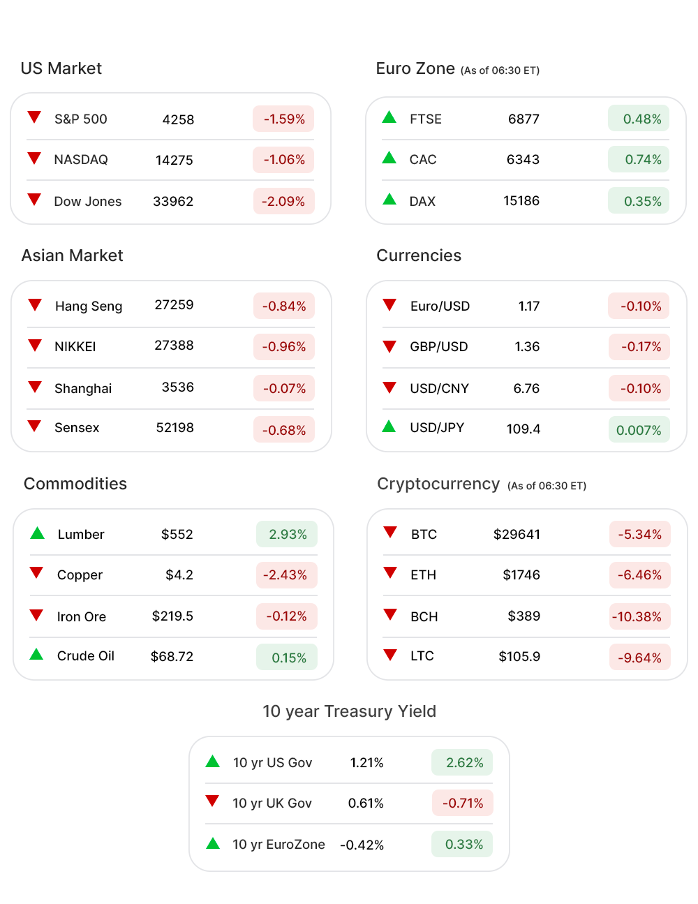 Investors’ worries, about the impact of delta variant over economic recovery, culminated into a selloff in the US markets Monday. Major indices tanked!