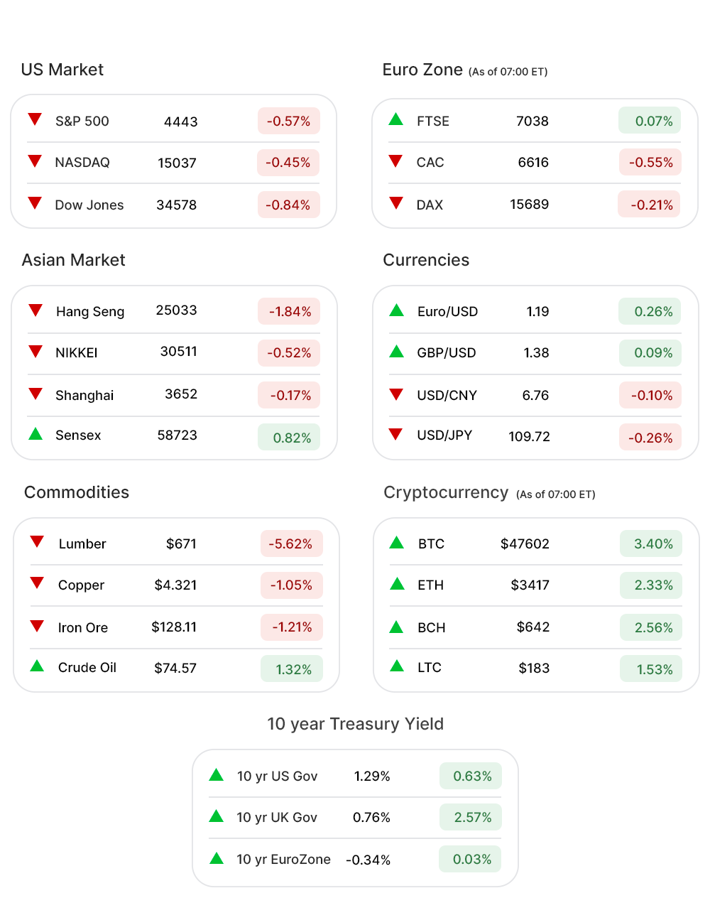 As of 07:00 ET, all the major indices were in the green zone. Nasdaq Futures (0.19%▲), Dow Futures (0.02%▲), S&P 500 Futures (0.11%▲), and Russel 2000 Futures (0.09%▲).