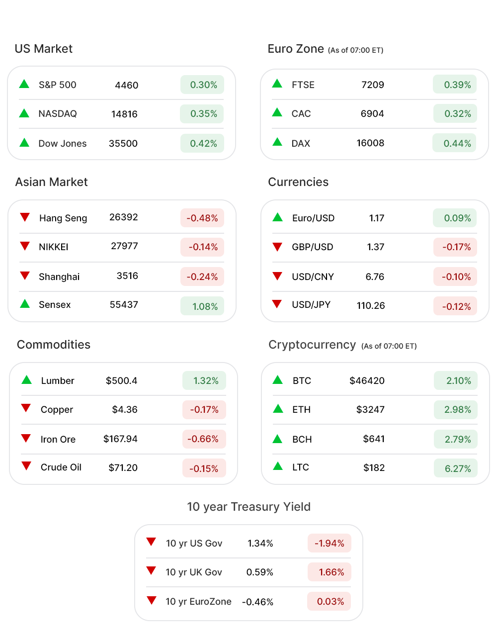 The online marketplace for lodging, Airbnb Inc (ABNB, 2.02%▲), reported a 300% y-o-y increase in revenue to $1.34bn and a loss of 11 cents per share. The company however warned investors about unexpected volatility in wake of the Covid delta variant. The stock fell by more than 5% after hours.