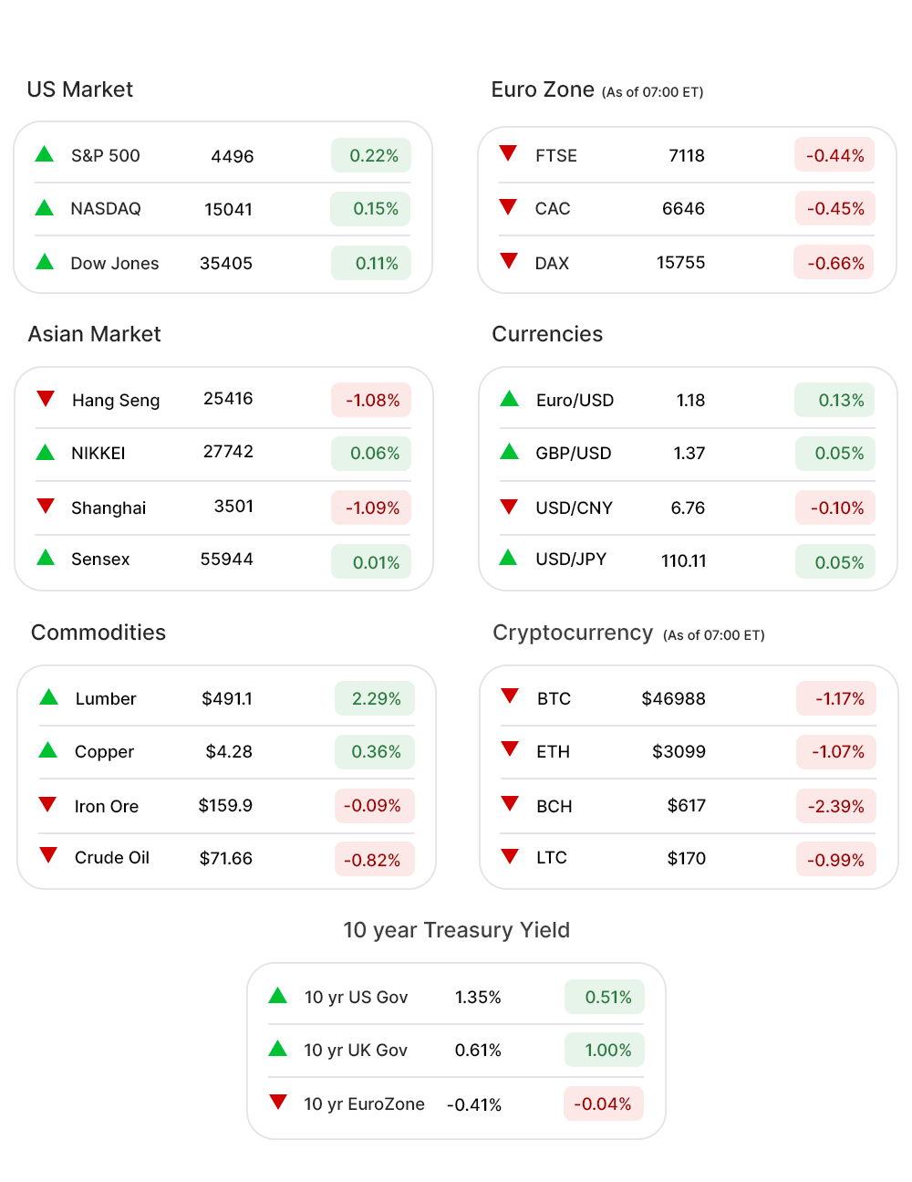 Interest-ing! South Korea becomes the first major Asian economy to raise interest rates since the beginning of the pandemic, from a record low of 0.5% to 0.75%. The move is aimed at curbing household debt and soaring home prices. KOSPI slid 0.58%.