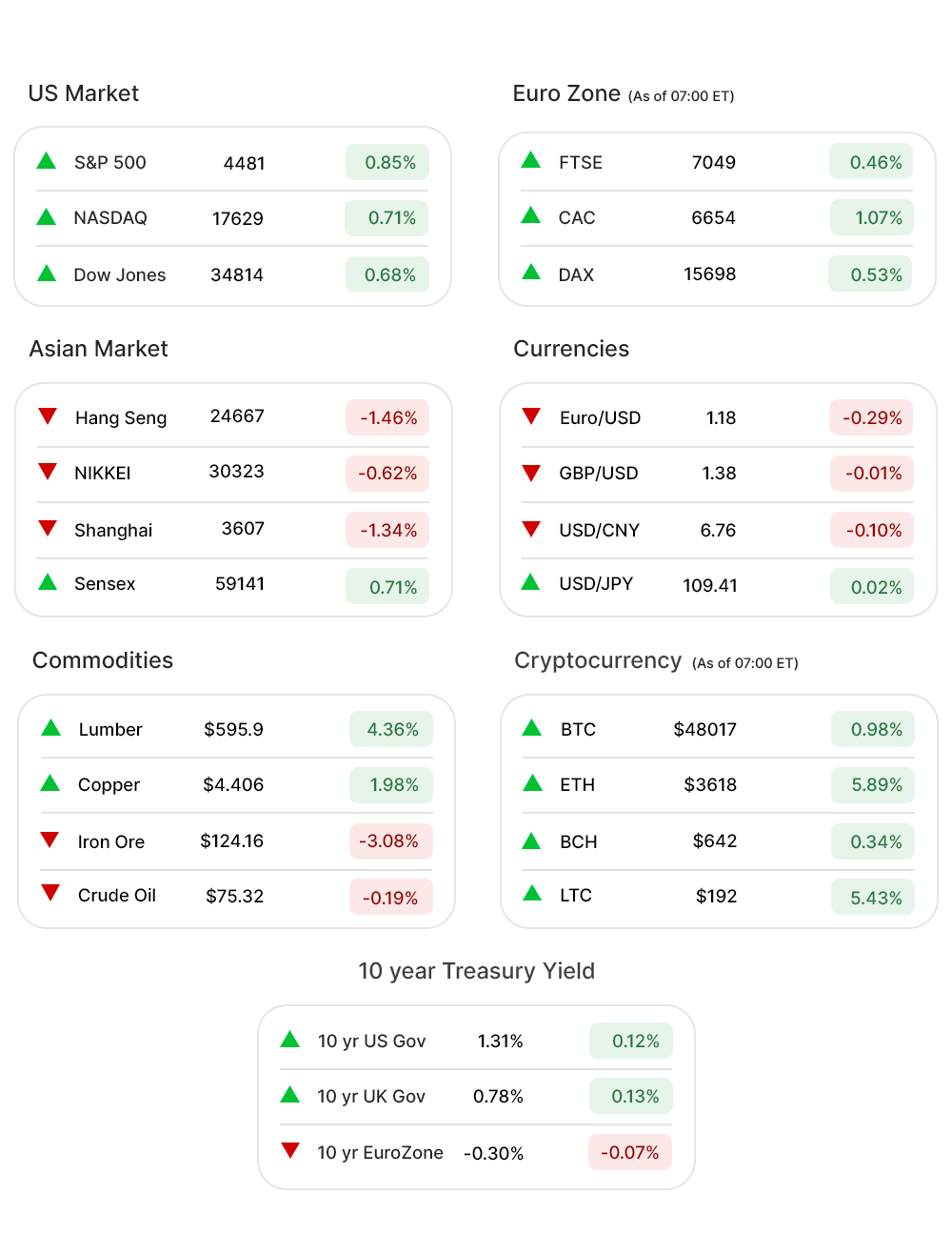 As of 07:00 ET, none of the indices was in green. Nasdaq Futures (-0.23%▼), Dow Futures (-0.10%▼), S&P 500 Futures (-0.16%▼), and Russel 2000 Futures (-0.%▼).